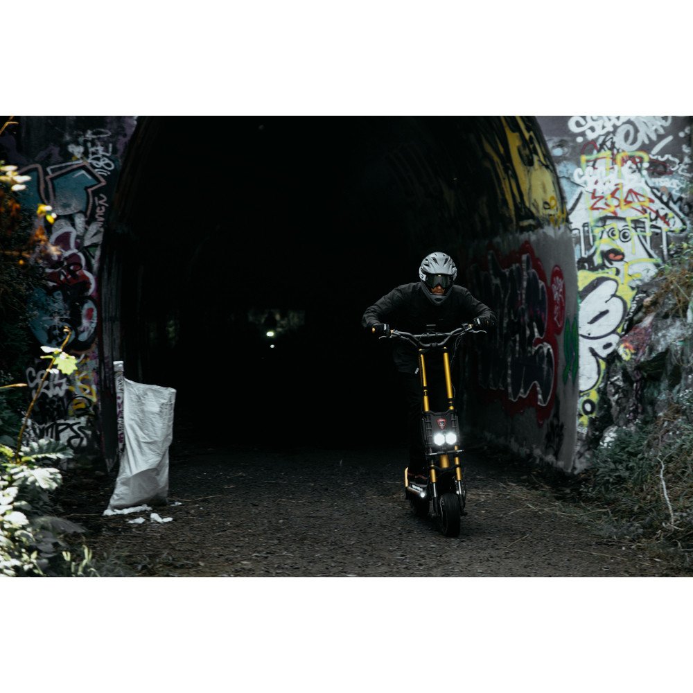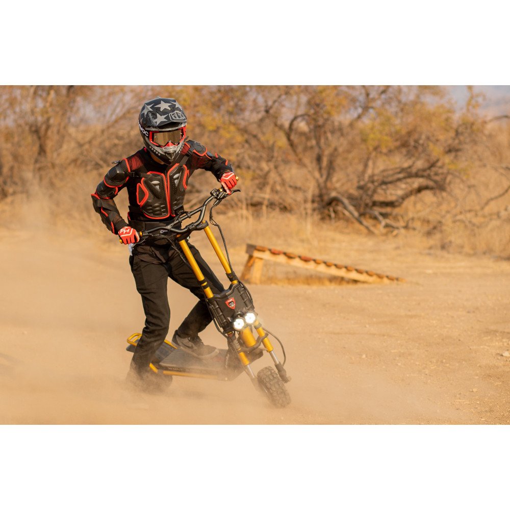 Široká 11" offroadová kola jsou vhodné do terénu, takže s nimi překonáte mnoho překážek. Dokonce jsou vybavená hydraulickým odpružením, abyste se při jízdě cítili co nejvíc pohodlně. O bezpečí se postará přední a zadní hydraulická kotoučová brzda s ABS. Zastavíte téměř okamžitě.