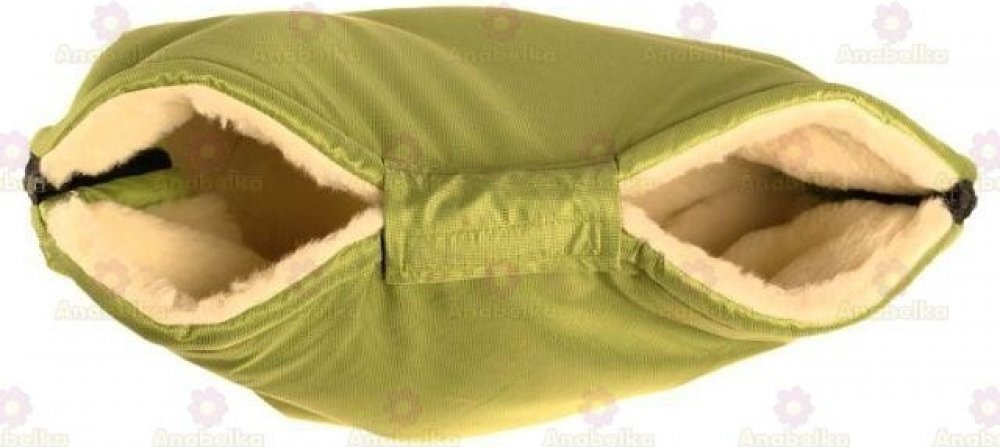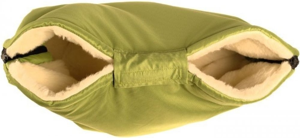 Zelený rukávník z ovčí Merino vlny ochrání ruce před chladem i deštěm. V zimním období je nutné každou chvíli otírat miminkům nos a s rukavicemi je to velmi obtížné - po několikerém sundání a nandání rukavic dáte rukavice do kapes a raději mrznete. Rukávník tomuto zabrání - ruce máte v teple, ale bez rukavic. Rukávník je dosti velký a vhodný i pro kočárky s brzdou i pro tatínky, kteří mají velké ruce. Vrchní vrstva je z plášťoviny a vnitřní vrstva je z ovčí vlny Merino a uvnitř je zateplený oteplovacím rounem značky Valtherm.