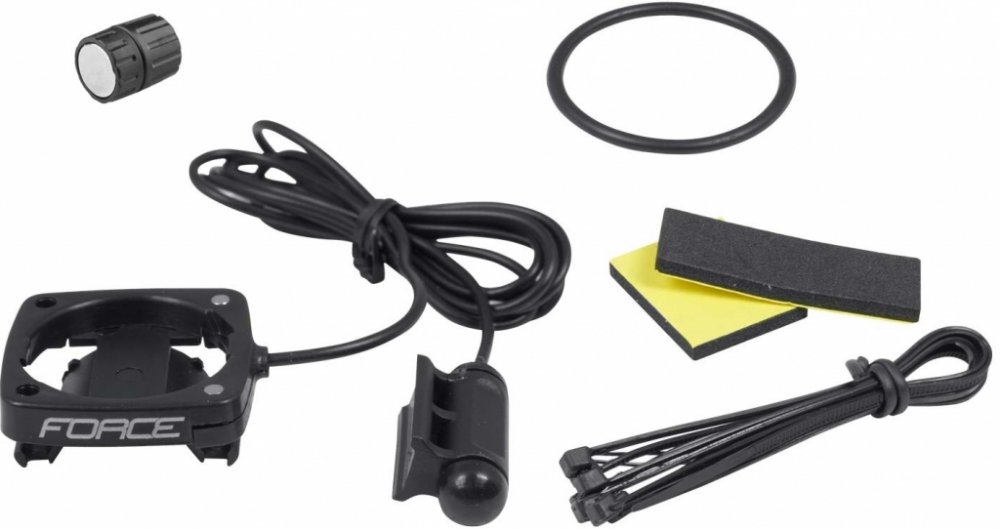 obsahuje: otočný držák s logem FORCE, drátový snímač