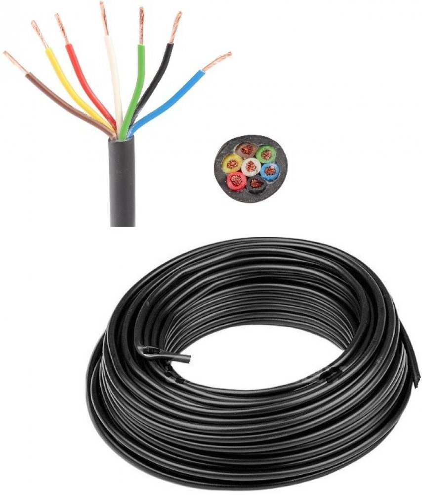 Sedmižilový sedmibarevný kabel pro elektroinstalace přívěsů bez couvačky.