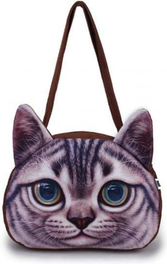 Originální a stylová kabelka ve tvaru hlavy kočky se špičatýma ušima a výraznýma krásnýma očima. 3D kabelka mourovatá kočka je skvělý doplněk pro každou milovnici roztomilých kočiček.