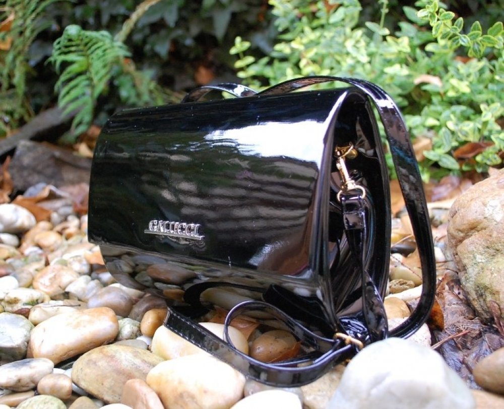 Kabelka listová černá lakovaná stříbrné logo