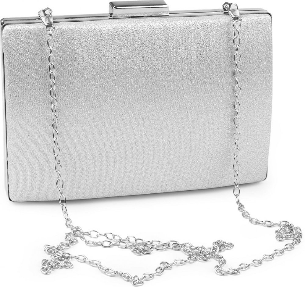 Malá společenská kabelka působí luxusně. Její jemně strukturovaný povrch se jemně třpytí. Zdobí ji výrazné lesklé zapínání a rámeček po celém obvodu v barvě kabelky. Kabelka je pevně vyztužená, její součástí je dlouhý odnímatelný řetízek na karabiny. Můžete ji nosit v ruce nebo jako crossbody přes rameno či do kříže.