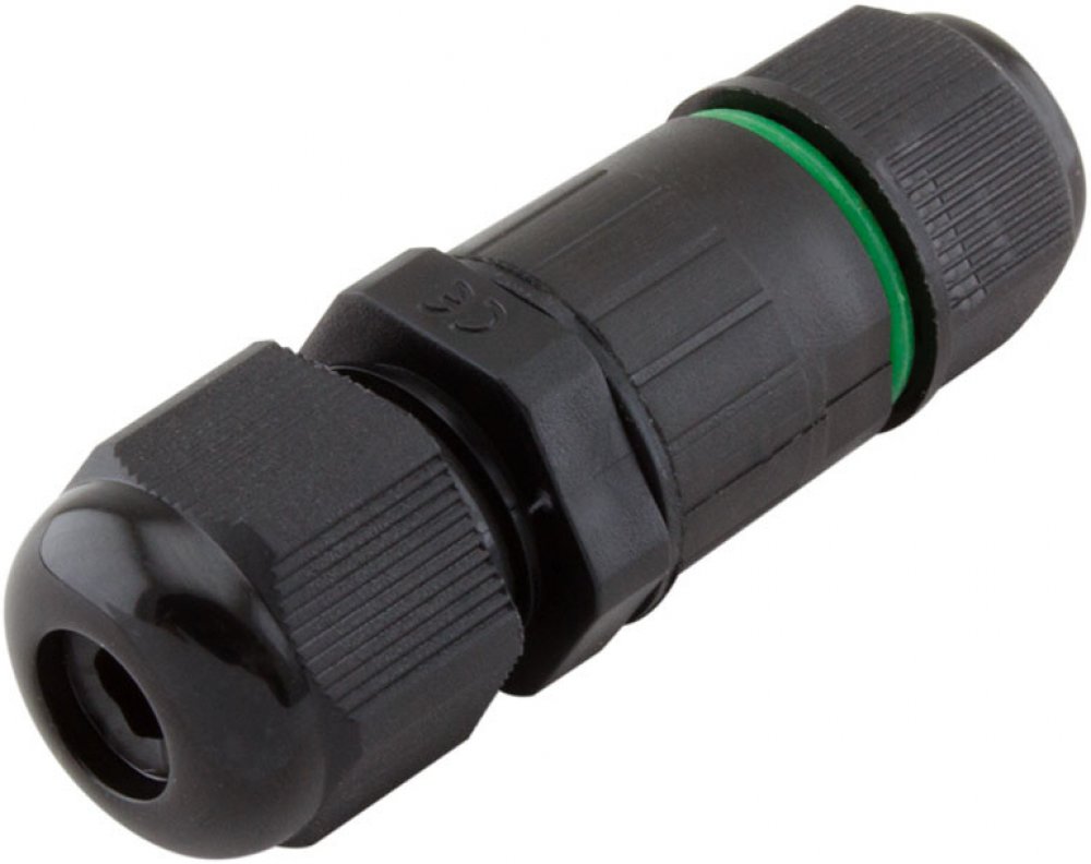 Kabelová vodotěsná spojka pro vícežilové kabely s krytím IP68. Vhodná pro venkovní použití, např. pro připojení LED reflektorů.