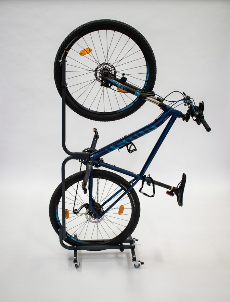 - Pojízdný stojan na 4 otáčecích kolečkách (dvě kolečka jsou s brzdou) vhodný pro všechny velikosti jízdních kol