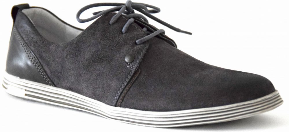 Pánská celoroční vycházková obuv Kacper je na šněrování. Obuv je vyrobena z broušené kůže v kombinaci s hladkou kůží na patě. Špička je stíraná. Obuv je jednoduchého střihu a je zdobená pouze jemným šitím. Díky kožené stélce je obuv komfortní a pohodlná.