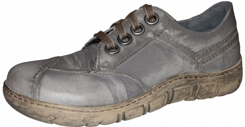 Dámská celokožená obuv Kacper má svršek sešívaný z více dílů, navíc má stíraný povrch. Je pohodlná díky měkké stélce a flexibilní podešvi. Stélka má perforování, které zlepšuje cirkulaci vzduchu v obuvi. Také podešev má opotřebovaný vzhled.