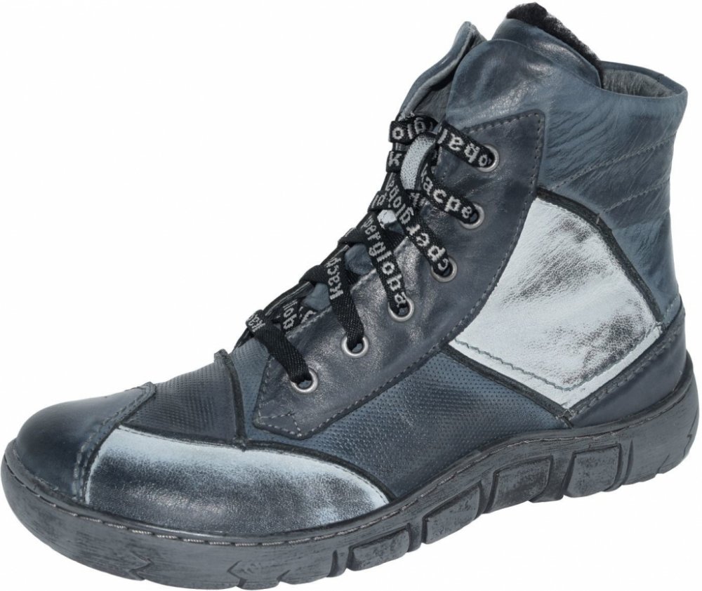 Zajímavý design svršku jistě upoutá vaši pozornost. Kožený svršek je ve vícebarevném provedení a s raženým povrchem. Nohy budou v teple díky kožíšku na podšívce i stélce. Šněrování na nártu doplňuje zip na vnitřní straně, proto bude nazutí snadné.