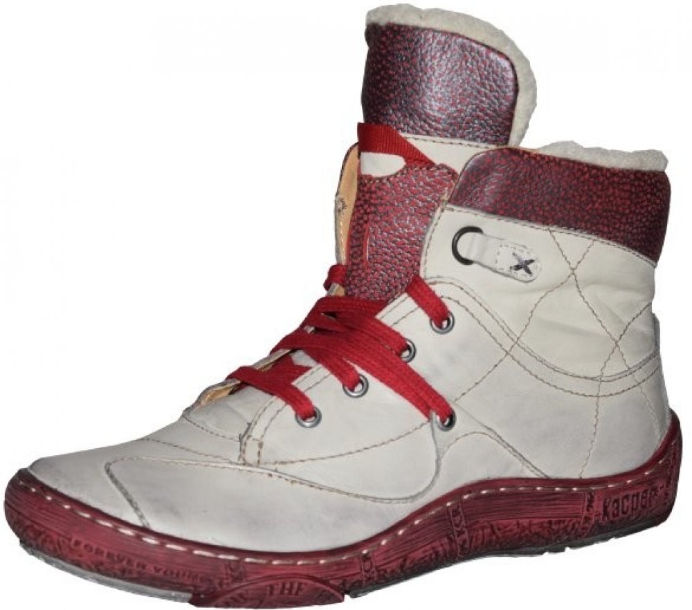 Dámská kožená městská obuv má béžový svršek s prošíváním a detaily v kontrastní červené. Zateplené jsou hřejivým kožíškem na podšívce i stélce. Výrazné červené šněrování je doplněno o zip na vnitřní straně, který usnadní nazouvání. Tato obuv poskytuje pohodlí a komfort při chůzi.