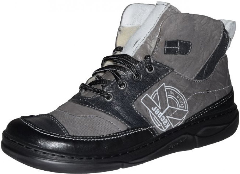 S touto designově zajímavou obuví si zajistíte i teplo pro nohy. Uvnitř je silný kožíšek na podšívce i stélce. Svršek je kožený, vícebarevný s potiskem loga Kacper. Šněrování na nártu je doplněno o zip na vnitřní straně, který usnadní obouvání. Jedná se o pohodlnou městskou obuv.