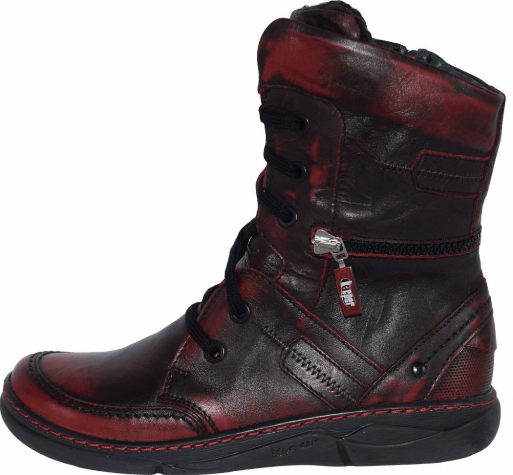 Dámská zimní obuv v červeném odstínu upoutá svým zajímavým designem s probarvením do černa. Uvnitř je vybavena silným kožíškem na podšívce i stélce. Na vnitřní straně má funkční zip pro snadné obutí. S touto obuví budete na zimu dobře připraveny.