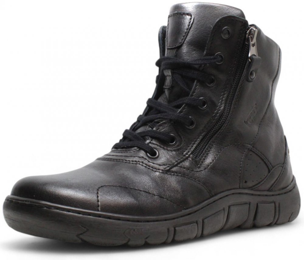 Dámské kotníkové boty Kacper na pohodlné platformě se šněrováním. Kožený vzor se snadno přizpůsobí noze. Díky kulaté špičce jsou vhodné i na širší nohu. Ozdobné šněrování s logem značky dodává botám šmrnc.