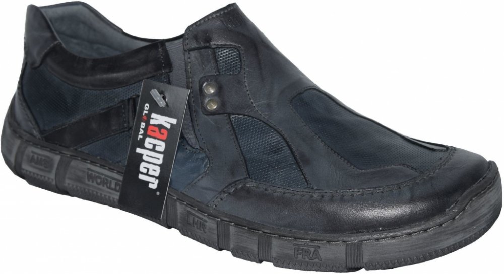 Pánské mokasíny jsou v zajímavém designovém provedení s koženým svrškem, který má částečně ražený povrch. Jsou velice pohodlné díky měkké kožené stélce a flexibilní podešvi. Nazouvání usnadní pružné vsadky po stranách.