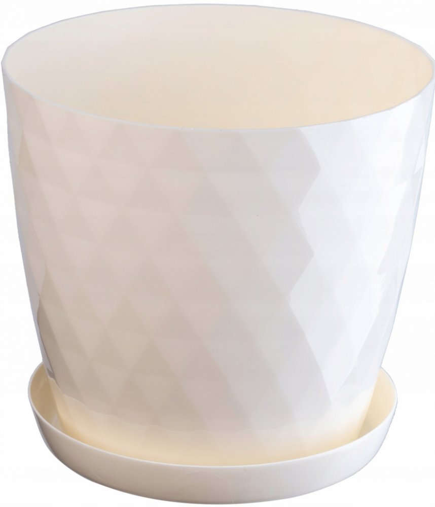 Květináč je vyroben z pevného plastu (PP), který je odolný proti deformaci a zároveň velmi lehký.