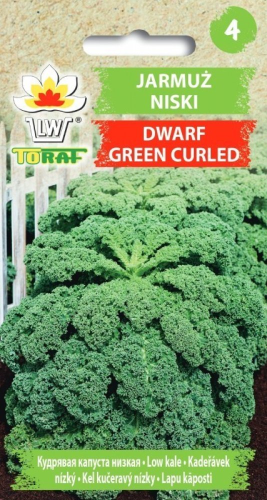 Kadeřávek zelená odrůda DWARF GREEN CURLED je nízká (trpasličí) odrůda dorůstající 20 až 40 cm, s vegetační dobou přibližně 100 dní. Kudrnaté listy