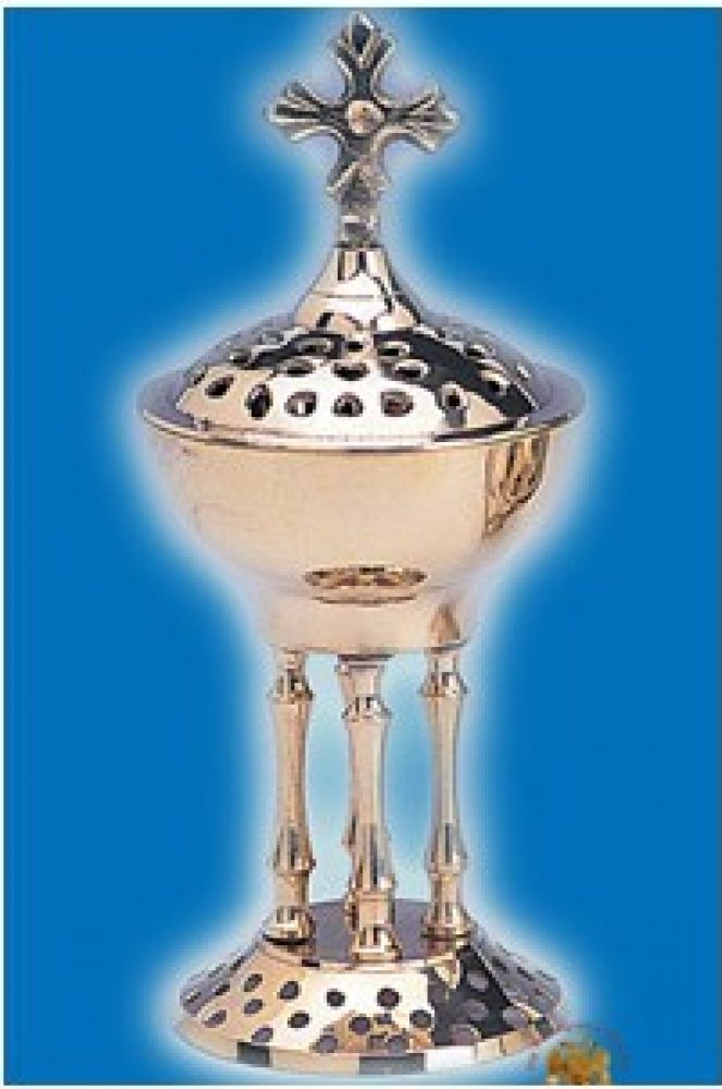 Kovová kadidelnice byzantského stylu na čtyřech nožičkách.