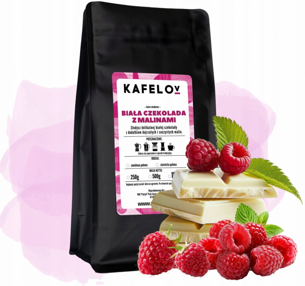 Kafelov Káva zrna Arabica Bílá Čokoláda s malinami 1 kg