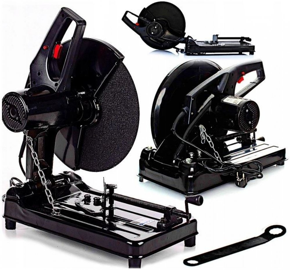 - Sada obsahuje 355mm řezný kotouč na kov. Zařízení má možnost nastavení úhlu řezu 45o vpravo a vlevo.