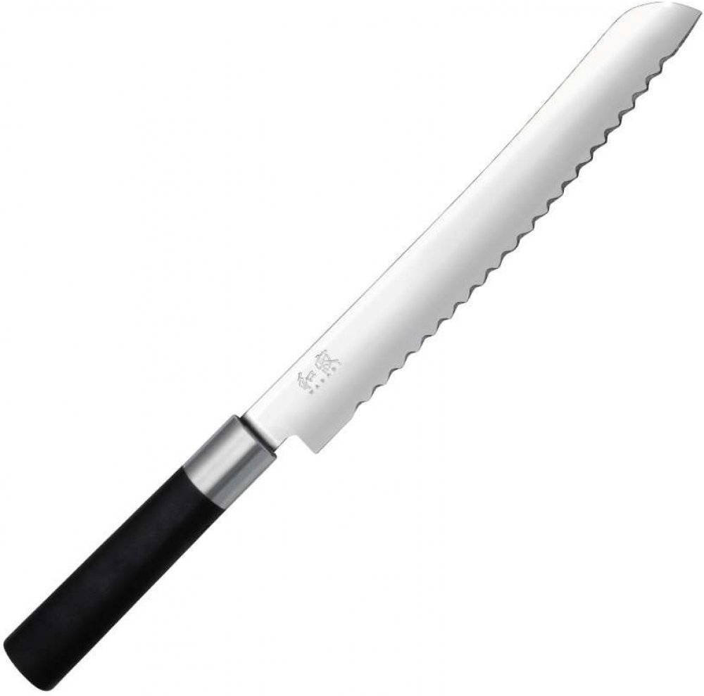 Nože na chléb musí splňovat zvláštní požadavky: Pouze s výrazně vroubkovaným ostřím a dlouhou, silnou čepelí lze krájet bochníky chleba, aniž by se plátky trhaly nebo odlupovaly. Tento nůž na chléb je ideální pro mnoho druhů chleba a je vždy dobrou volbou.Řada Wasabi Black - řada se 14 tvary čepele Tvrdost 58 (±1) HRCWasabi Black - leštěná čepel, černá rukojeť: Nože vyvinuté v Japonsku s čepelí z nerezové leštěné oceli o tvrdosti 58 ±1 HRC dodají vaší kuchyni nezaměnitelný styl Dálného východu. Pro řadu Wasabi byla vyvinuta rukojeť, jejíž speciální kombinace bambusového prášku a polypropylenu nabízí optimální hygienu - také díky přirozeně antibakteriálnímu účinku bambusových komponent. Na rozdíl od tradiční japonské dřevěné rukojeti není černá rukojeť přišpendlená, ale zcela obepíná čepel, takže čepel je s rukojetí pevně spojena a na druhé straně se v ní neusazují žádné nečistoty - vhodnost do velkých kuchyní zaručena. Wasabi Black - leštěná čepel, černá rukojeť: nože vyvinuté v Japonsku s čepelí z nerezové leštěné oceli o tvrdosti 58±1 HRC dodají vaší kuchyni osobitý styl Dálného východu. Na rozdíl od tradiční japonské dřevěné rukojeti není černá rukojeť přišpendlená, ale zcela obklopuje čepel, takže jednak je čepel pevně spojena s rukojetí, jednak se v ní nemohou hromadit nečistoty. - Čepel z leštěné nerezové oceli - Černá plastová rukojeť s bambusovým práškem, která zcela uzavírá čepel - S vroubkovaným ostřím - Ideální pro krájení chleba a rohlíků i většího ovoce (např. melounu) Rozměry: Délka čepele: 23 cm Délka rukojeti: 12,6 cm Materiál: nerezová ocel / plast / bambusový prášek Číslo výrobku výrobce: 6723B