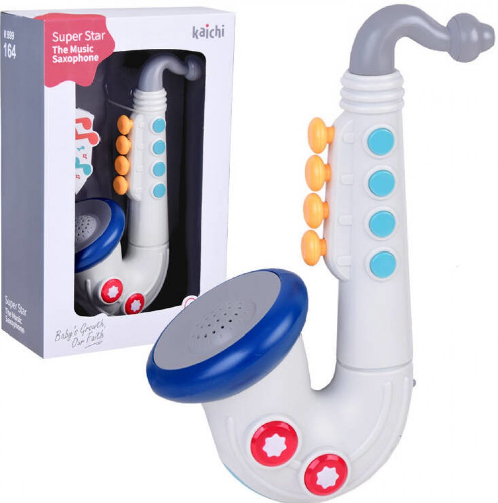 Máte doma malého zpěváka či hudebníka? Tento modrý saxofon je ideální volbou! Skvělý nejen jako rekvizita pro domácí koncerty, ale také jako interaktivní hračka, která podporuje kreativitu a radost z hudby. Vhodné od 18 měsíců.Funkce hračky:velké červené tlačítko - nastavení hlasitosti (3 úrovně)malé červené tlačítko - přepínání mezi 3 herními módyžlutá tlačítka - aktivují melodie nebo zvuky dle zvoleného móduautomatický mód - hraje 3 různé melodiemanuální mód - foukáním a mačkáním tlačítek vytváříte vlastní skladbyvýukový mód - učí základní melodie jednoduchým způsobemProč je saxofon skvělý:rozvíjí sluch, motoriku a cit pro rytmusstimuluje kreativitu, řeč a paměťučí děti radostně tvořit vlastní hudbuParametry:rozměry cca 31 cm x 7 cm x 11 cmnapájení 3× AAA baterie (součástí balení)balení - barevná, dárková krabice