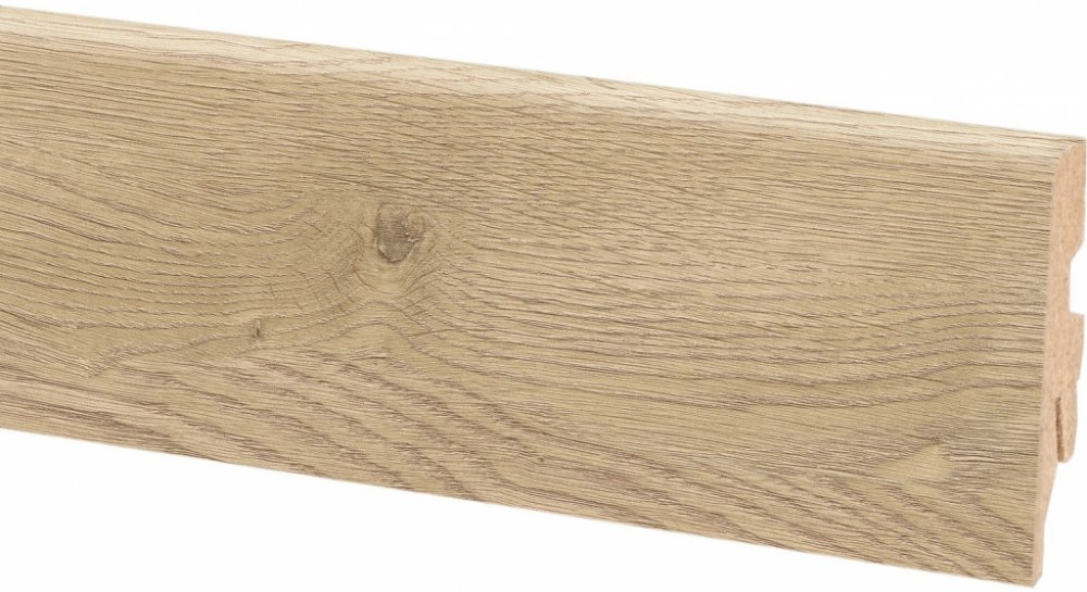 Pomocí vysoce kvalitních soklových lišt vytvoříte optimální a designově vhodný přechod mezi podlahou a stěnou. Chrání stěny před mechanickým poškozením při čištění podlahy. Soklové lišty s perfektně laděným dekorem lze rychle a jednoduše upevňovat lištovými svorkami. - Nosný materiál: MDF - Upevňovací technika: lištové svorky Spodní hrana soklové lišty Kaindl je vyfrézována pod úhlem 4° a lze ji proto snadno a přesně umístit na podlahy Kaindl. Soklová lišta je na zadní straně velkoryse drážkovaná. Tato drážka umožňuje "skryté" pokládání elektrických vedení (např. kabely reproduktorů, telefonní linky, interkomové systémy atd.). Navíc usnadňuje instalaci v případě nerovných stěn.