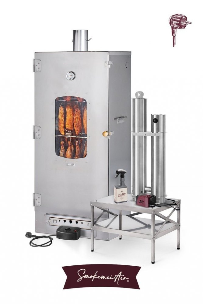 Generátor kouře Smokemeister® staví naše fortelné mašinky do segmentu poloautomatických udíren. Vydrží dodávat proviantu konstantní dým po dobu až 12 hodin na jedno naplnění zásobníku.