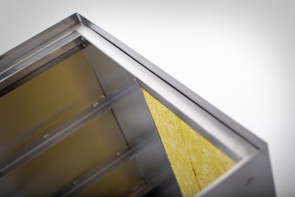 Všechny izolované udírny jsou zateplené až do spodní části. Získali jsme tím lepší ekfektivitu vyhřívání a zároveň uspořili část elektrické energie tím, že teplo neutíká ven z udírny neizolovanými částmi.