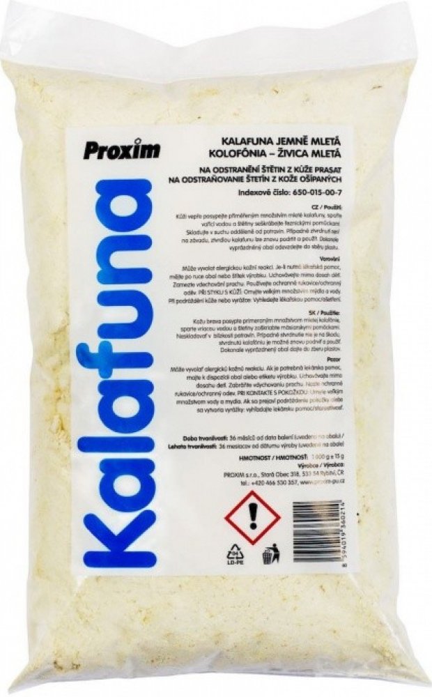 Smola / kalafuna se používá k odstraňování štětin z vepřů a peří z drůbeže.