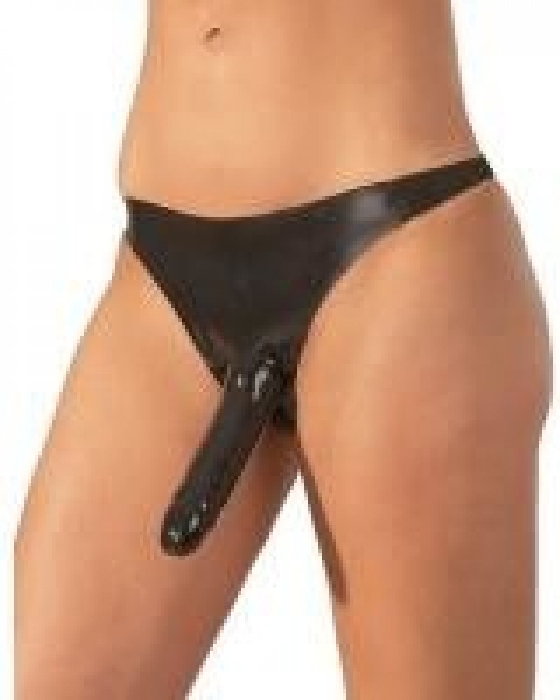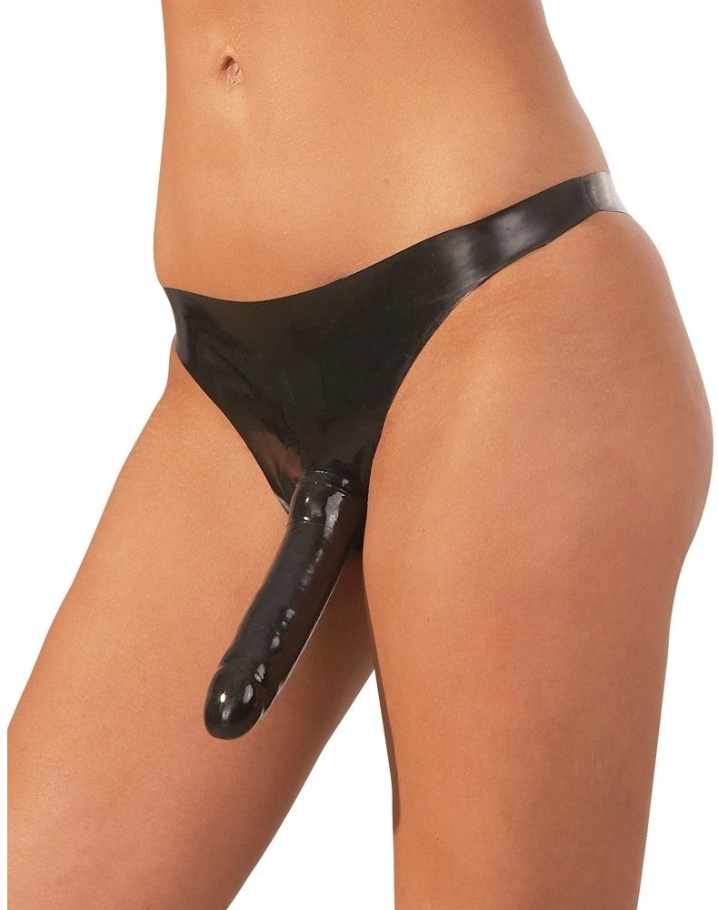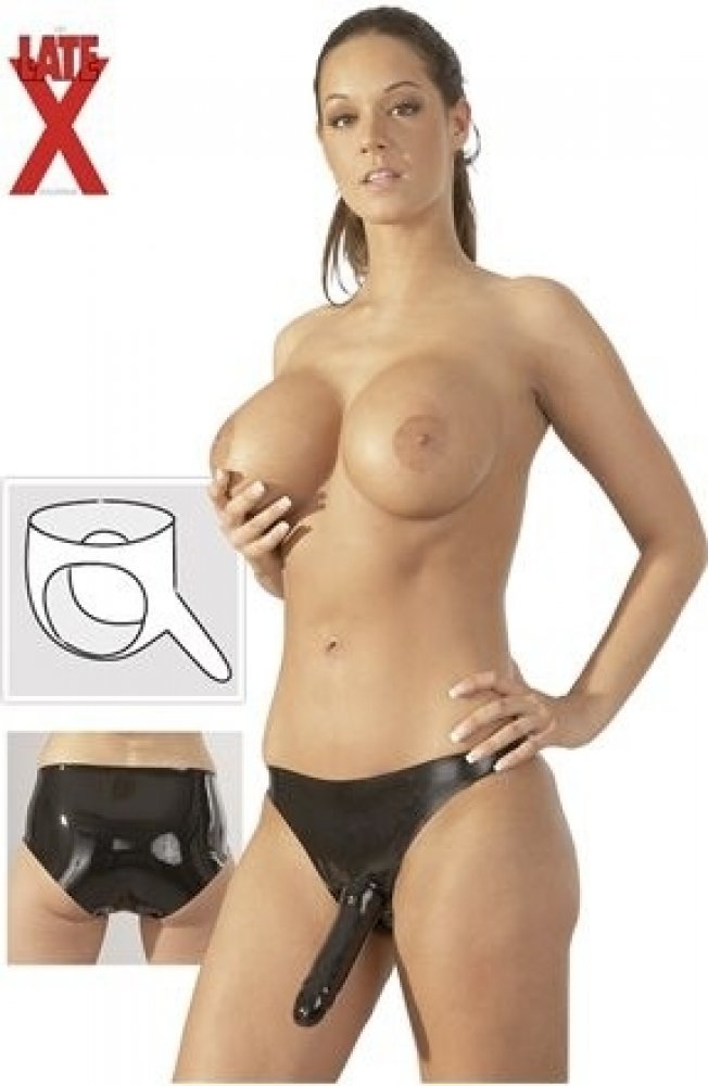 Černé latexové kalhotky, klasického střihu, s dvěma pevně umístěnými dildy. Prvním vnějším a druhým vnitřním vaginálním dildem. Vyzkoušejte tyto zajímavé kalhotky a měňte své role v posteli dle libosti. Kalhotky nevystavujte přímému slunečnímu záření, vyhněte se kontaktu s ostrými předměty. Jsou vyrobeny z přírodního kaučukového latexu, který může způsobit alergie. Čištění provádějte pouze speciál...