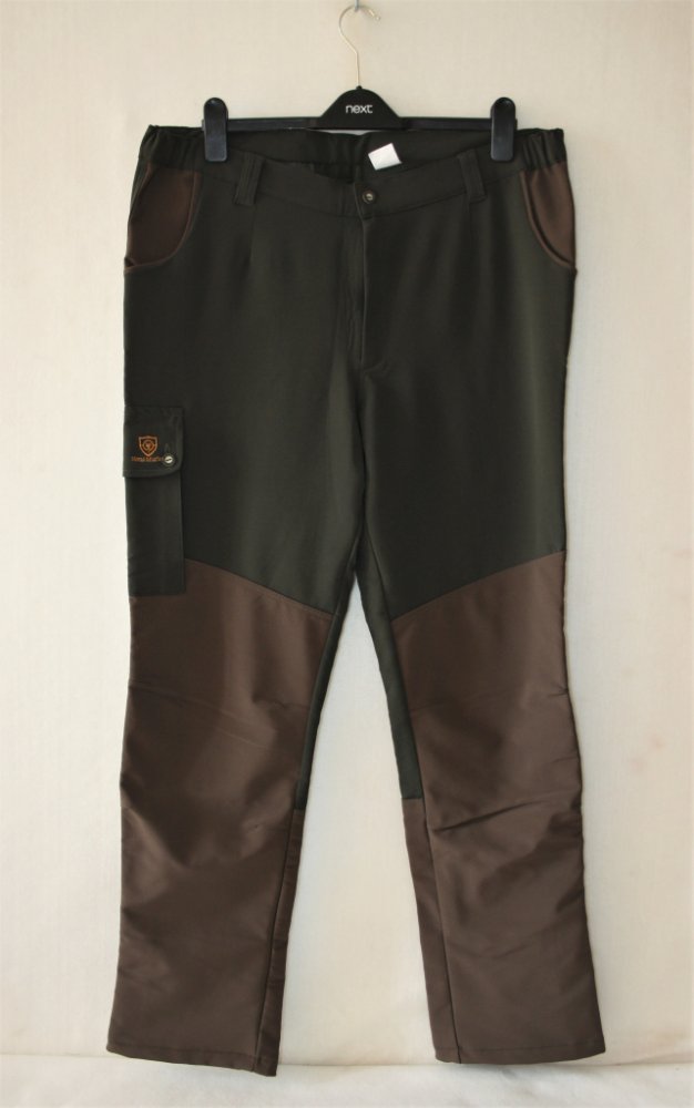 Kalhoty mají zesílená kolena a zadní část kalhot