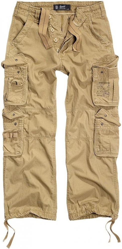 vintage kalhoty od brandit Kalhoty Pure Vintage od výrobce Brandit jsou velmi pohodlné a 100% bavlněné. Jsou inspirované armádními modely. Mají opraný vintage design. Je na nich hodně velikých kapes, např. boční vakové a pod nimi další boční i s poutky na propisky atd. V pase i na konci nohavic lze upravit jejich velikost pomocí tkanice. Samozřejmě nechybí ani poutka pro klasický opasek. VLASTNOST...