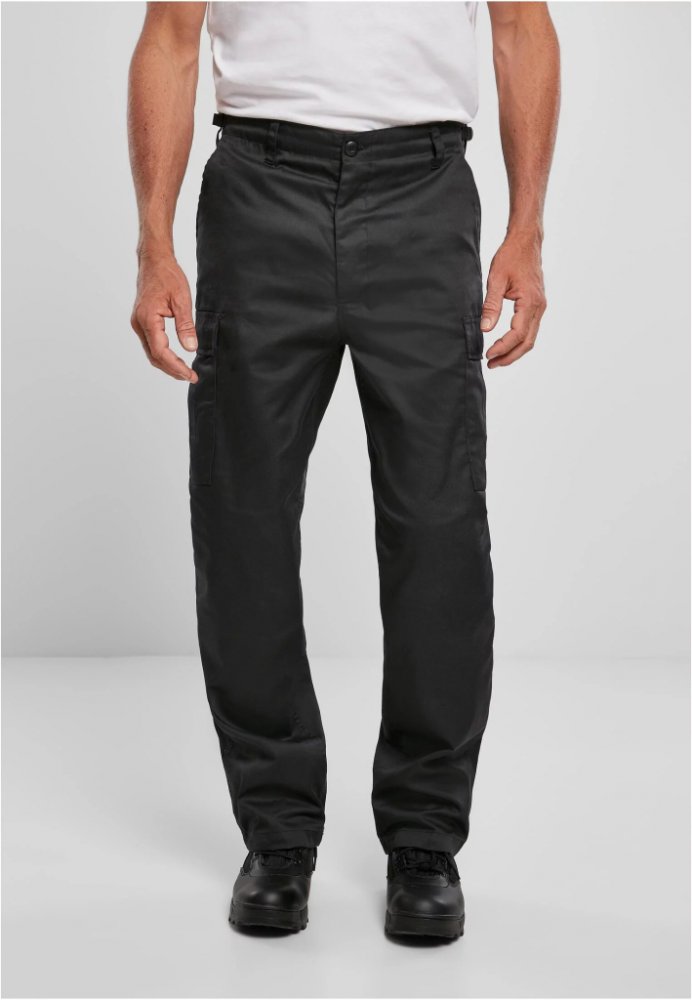 Nestárnoucí praktický model kalhot určených pro profesní použití nebo volný čas. Kalhoty US Ranger střihově vycházejí z osvědčené bojové uniformy US Army BDU (Battle Dress Uniform). Zachovávají šikmé přední kapsy, dvě vakové kapsy na stehnech a dvě zadní kapsy. Prostoru pro uložení veškerých potřebných věcí poskytují tedy dostatek. Stehenní a zadní kapsy jsou navíc kryté klopami se skrytými knoflíky, takže je jejich obsah dobře chráněn proti vypadnutí při pohybu a činnosti. Oproti BDU nemají kalhoty US Ranger zesílení materiálu v oblasti sedu a kolen. Mírně se tím snížila odolnost při silném namáhání v těchto oblastech, ale zvýšila se pohodlnost při běžném nošení. Vzhledem na pevný směsový materiál, ze kterého jsou zhotoveny, však stále poskytují dostatečnou trvanlivost. 2 boční vakové kapsy možnost úpravy obvodu v pase stahovací tkanice v okraji nohavic pevný směsový materiál zapínání na knoflíky Materiál: 65% polyester, 35% bavlna