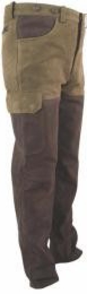 Kožené kalhoty oliva - hnědáPečlivě vypracované lovecké kalhoty z pevné, robustní kůže, vypodšívkované (100% polyester) téměř po celé délce. V pase zapínání na kalhotový háček. Délka se upravuje jednoduchým zastřižením.Vlastnosti: klasický design velký výběr velikostí (46-66) výborný střih materiál: buvolí kůže v zelené barvě s hnědými částmi prošívaná podšívka izolující teplo poutka na opasek kno...
