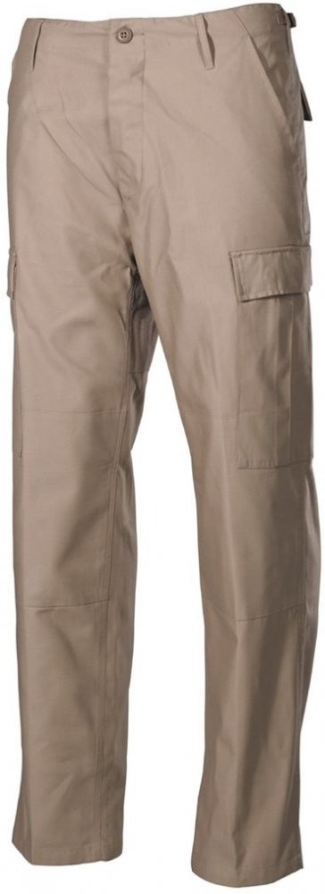 Kalhoty v klasickém střihu BDU, používané americkou armádou. Od německé značky MFH. Jsou vyrobeny z odolné směsné látky (35% bavlna, 65% polyester). Kalhoty mají celkem 6 kapes - 2 boční kapsy, 2 velké cargo kapsy s klopami a 2 zadní kapsy s klopami. Dále mají také pásky na úpravu pasu, stahovací šňůrky na koncích nohavic. Kolena a oblast sedu jsou zesílená. Parametry Materiál 65% polyester, 35% bavlna Velikost S M L XL XXL Max. obvod pasu (cm) 79 89 99 109 119 Celková délka (cm) 106 109 109 113 113