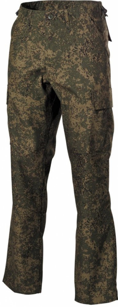 Kalhoty v klasickém střihu BDU, užívaných US Army. Jsou vyrobeny ze 100% bavlny v provedení rip-stop. Tento typ kalhot od firmy MFH je k dostání v 19 barevných a maskovacích provedeních.