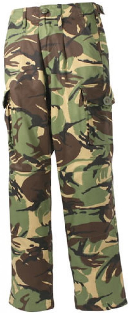 - Britské armádní kalhoty v maskovacím potisku DPM Mk.94 ze systému Combat Soldier 95