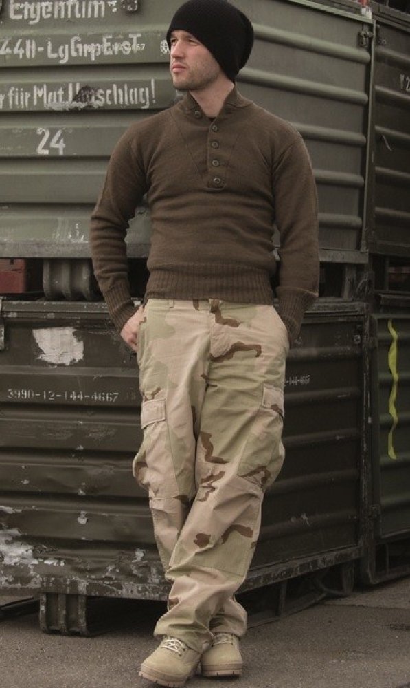 Maskáče vyhotovené v pouštním maskování podle střihu americké armády. Kalhoty jsou pošity celkem 6 kapsami, které z nich činí velice praktický kousek. Kapsáče jsou ušity z vysoce odolného materiálu Ripstop, ktetý zabraňuje šíření trhliny v látce, což z nich činí velice odolný kousek oblečení. Díky kvalitní provedení se hodí do náročných podmínek.US kalhoty BDU Ripstop, DESERT (3 barvy)kapsáče prov...