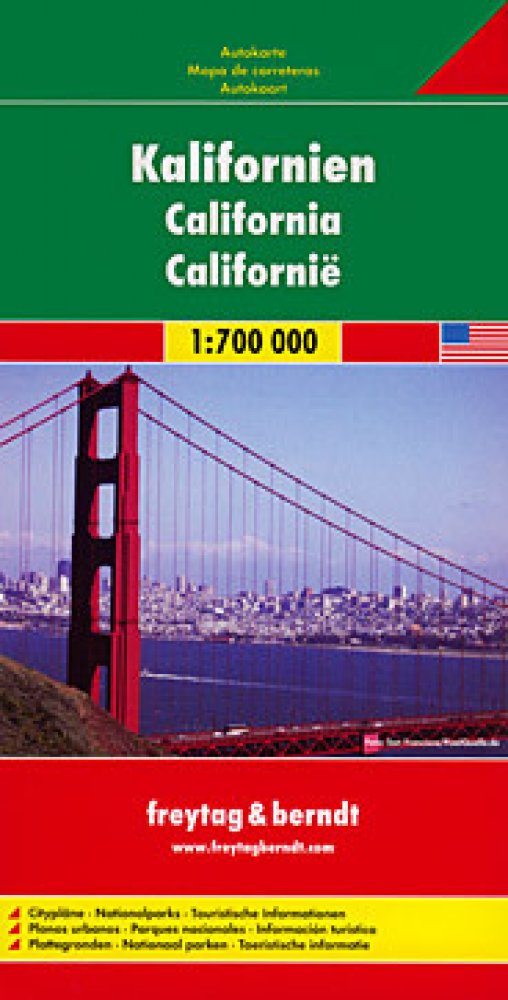 Oboustranná automapa Kalifornie. Základem motoristické vrstvy je silniční síť s kilometráží, čísly silnic, zvýrazněny jsou hlavní dopravní tahy, benzínové stanice. V mapě jsou symbolickými znaky zaznačeny přírodní a kulturní zajímavosti, úseky s panoramatickým výhledem, národní parky, možnosti ubytování, sportovních aktivit. Reliéf je zakreslen pomocí stínování. V samostatných výřezech naleznete plány Los Angeles, San Francisca, Las Vegas, součástí mapy je i rejstřík sídel. Vydání: Z důvodu časté aktualizace map Vám dotaz na rok vydání rádi zodpovíme telefonicky či emailem. Děkujeme za pochopení.