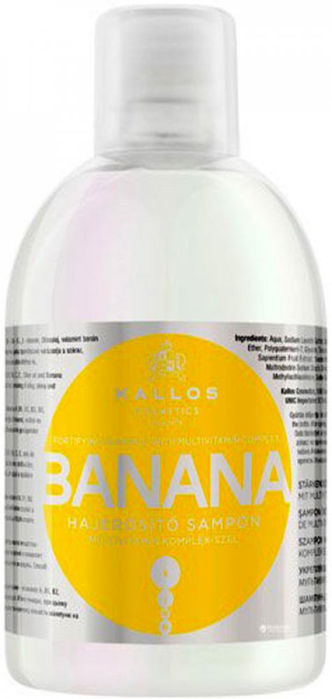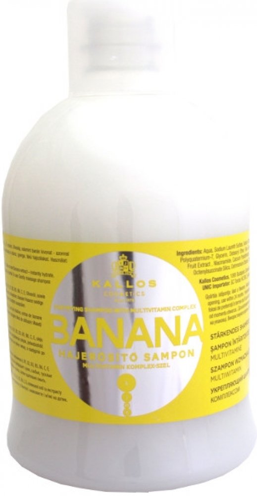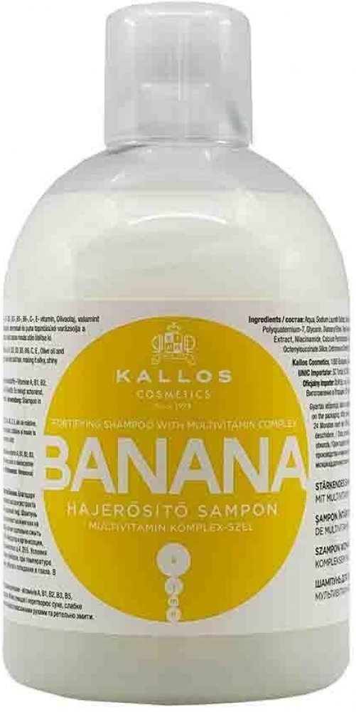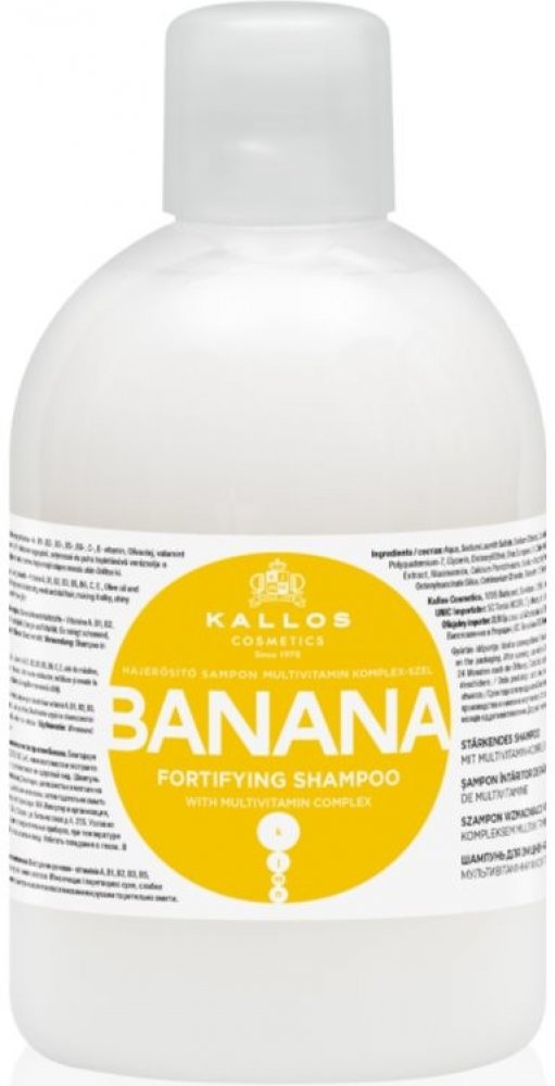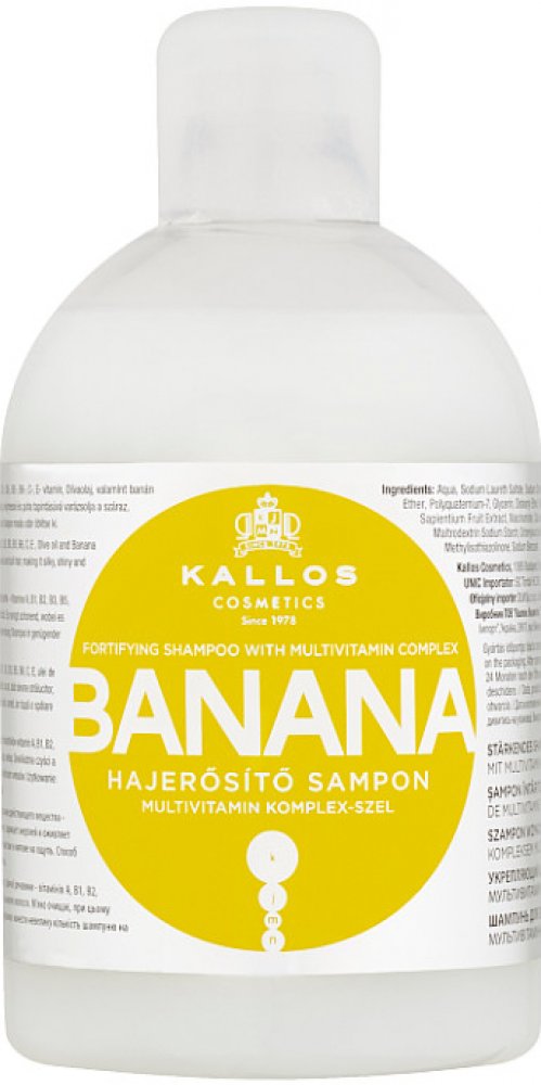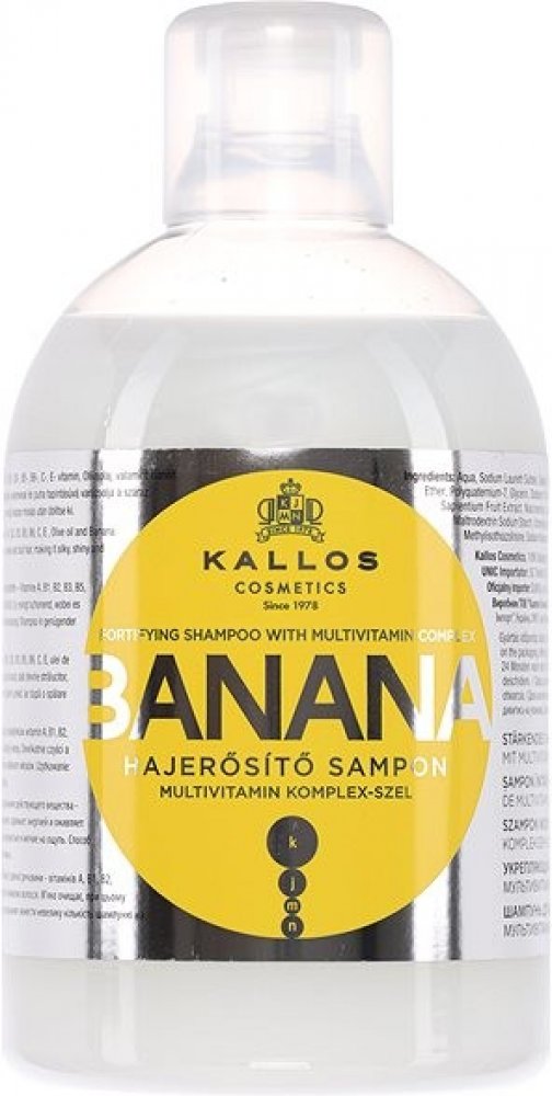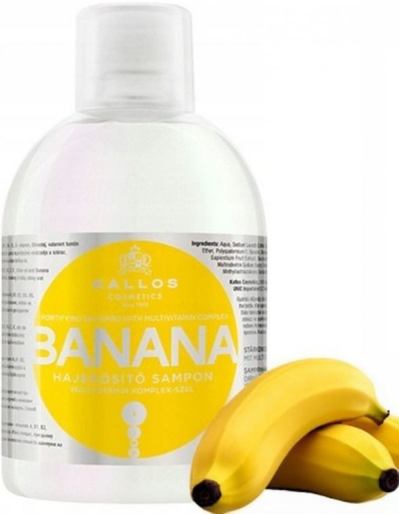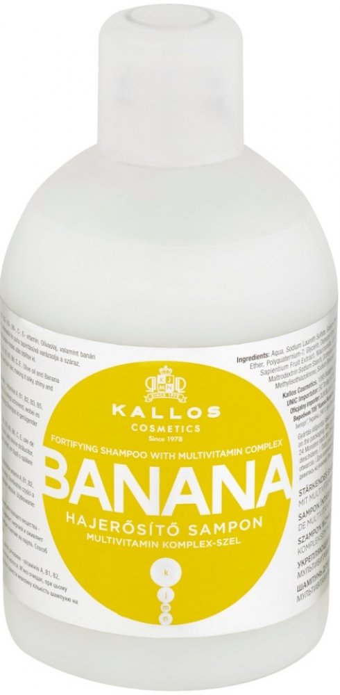 Kallos dámské pro oslabené vlasy 1000 ml Kallos na všechny typy pokožky tekuté 1150 g pro salon/velké balení (300+ ml) banánový extrakt, olivový olej, vitaminy a b c e