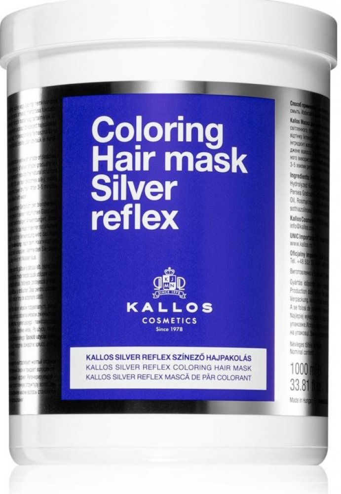 Speciální stříbrná maska Coloring Hair Mask Silver Reflex od značky Kallos pro zesvětlované a melírované blond vlasy. Doplňková péče ke stříbrnému šamponu Kallos Silver Reflex. Neutralizuje a odstraňuje nežádoucí nažloutlé odstíny zesvětlených blond vlasů. Vlasy získávají přirozený odlesk a stříbřitý tón. Intenzita stříbrného odstínu se postupně zvyšuje po opakovaném použití. Díky regeneračnímu a ...
