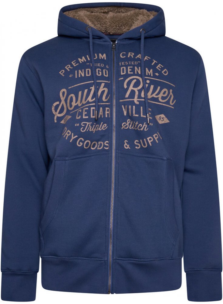 Mikina s kapucí na zip po celé délce s kontrastní sherpa podšívkou, klokaními kapsami, stahovací kapucí se šňůrkou a velkým potiskem „South River“ na hrudi. 80% bavlna, 20% polyester