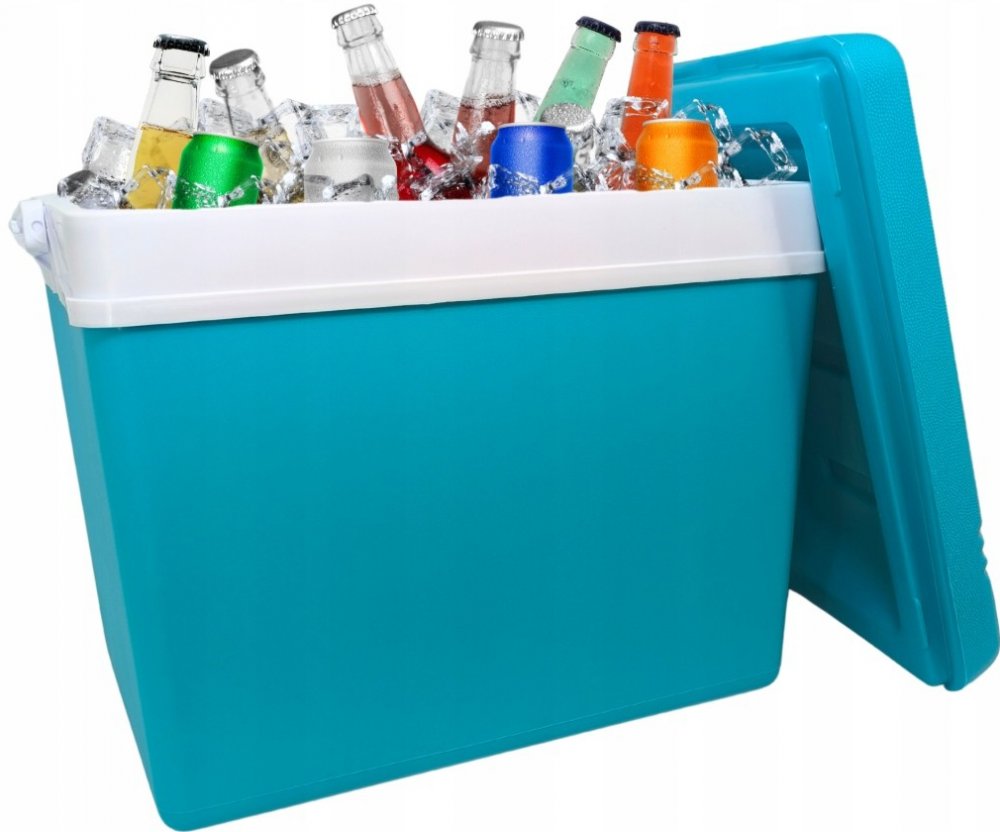 TURISTICKÁ AUTOMOBILOVÁ CHLADNIČKA S NÁPLNÍ 35 L XXL, PŘENOSNÁ, POHODLNÁ RUKOJEŤ