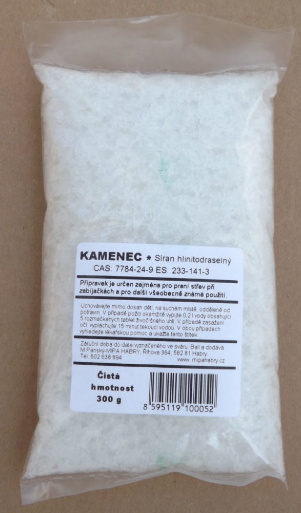 Objevte univerzální práškový síran hlinito-draselný, který je nepostradatelným pomocníkem při každodenní hygieně. Tento 300g prášek je vyroben z vysoce kvalitního síranu hlinito-draselného a používá se jako přírodní deodorant. Díky svým vlastnostem potlačujícím zápach nabízí účinné řešení pro každodenní použití. Hlavní vlastnosti: - Složení: ideální pro použití jako deodorant, který vás udrží svěží po celý den. - Materiál: Vyroben z čistého síranu hlinito-draselného, který je známý svými adstringentními a deodoračními účinky. - Hmotnost: Hmotnost 300 g zajišťuje dlouhodobé používání. - Údaje o balení: Kompaktní balení měří 3 cm na výšku, 11 cm na šířku a 13 cm do hloubky pro snadné skladování a manipulaci. Objem balení je 0,429 litru. Náš práškový síran hlinito-draselný je účinný nejen jako deodorant, ale používá se také v tradičních procesech, jako je mytí střev při domácí porážce a vydělávání kůží. Důvěřujte přírodní síle tohoto výrobku a vyzkoušejte si jeho vynikající vlastnosti na vlastní kůži. Ideální pro každodenní použití a udržitelný doplněk vaší péče o pokožku.