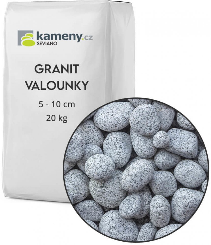 Granit valounky - oblázky jsou z přírodního kamene šedočerné barvy a vybrat si můžete z několika balení a velikostních frakcí. Barva je příjemná a decentní a nejčastěji se používají k obsypání keřů, rostlin, stromů, na hroby, kolem bazénu, do květináčů nebo do vázy.