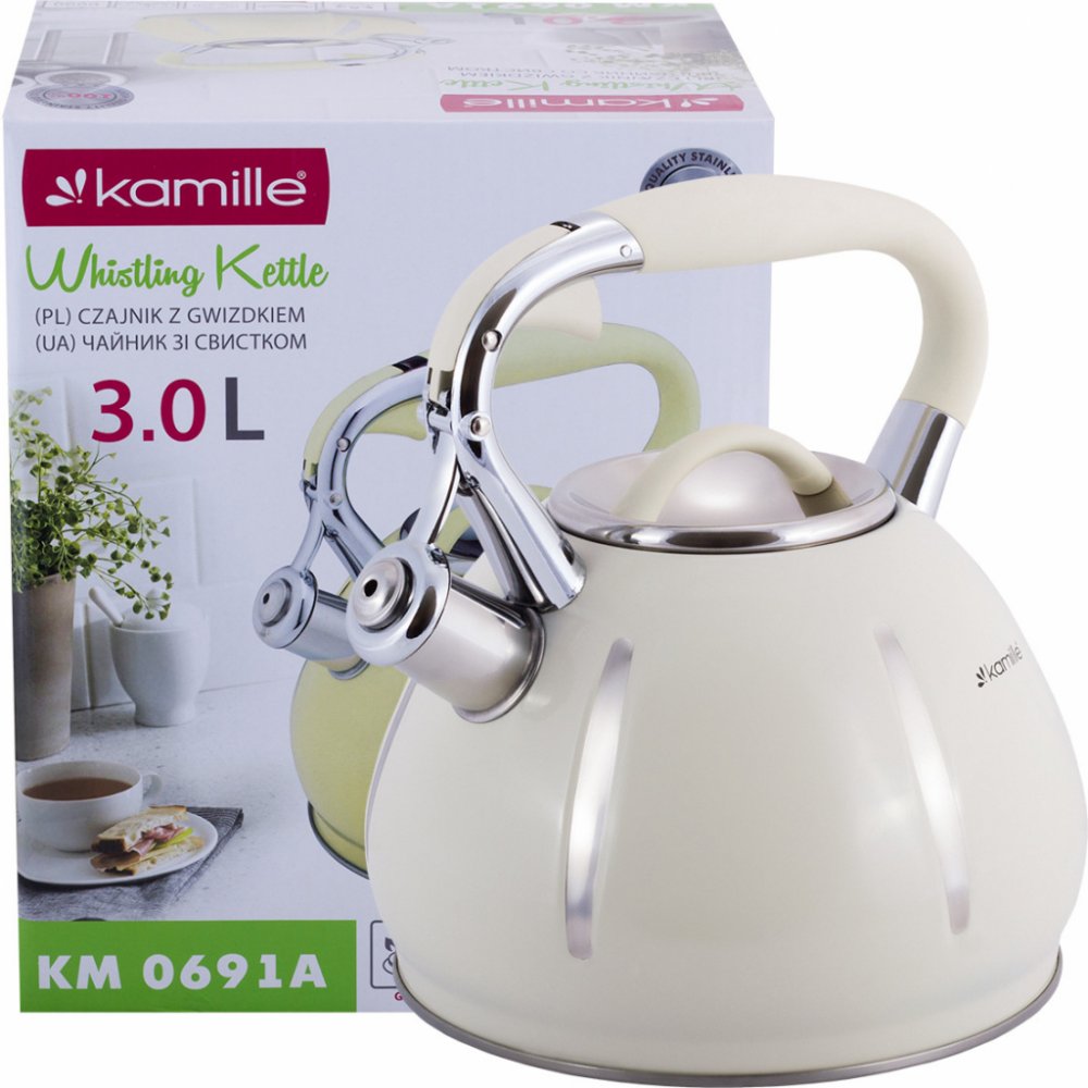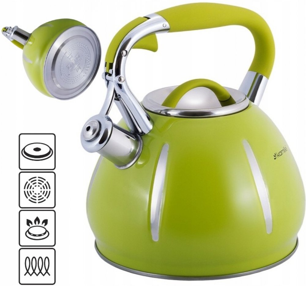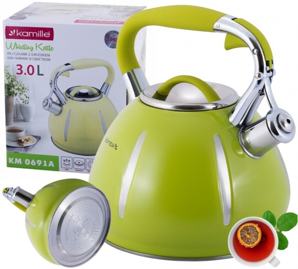 KONVICE S PÍŠŤALKOU INDUKCE GAZ KAMILLE ocelová zelená 3,0 L KM-0691A⭐ Elegantní a funkční konvice Kamille z nejnovější designové řady
