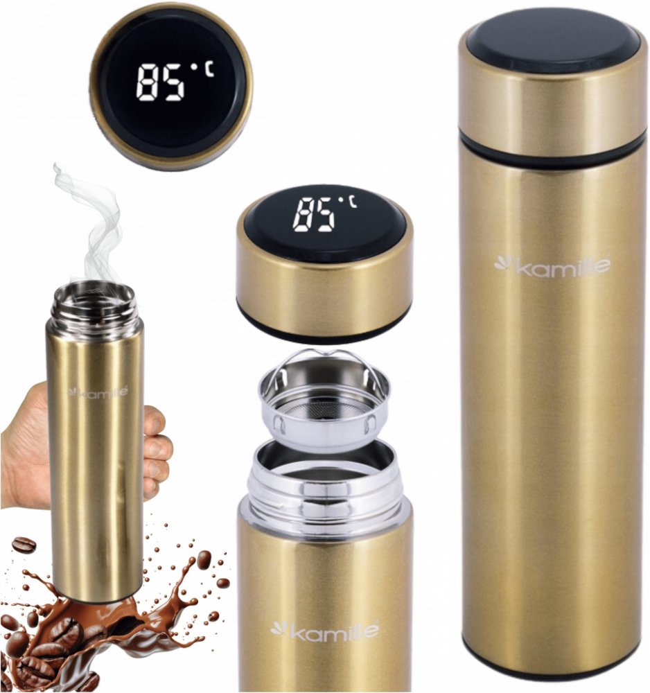 Přejete si vychutnat teplou kávu či čaj kdekoliv a kdykoliv? Kamille termohrnek LED 400ml, zlatý vám tento požadavek hravě splní. Víčko vám dává jistotu, že se nápoj na cestách nerozlije a přitom zajistí udržení teploty. Kamille termohrnek LED 400ml, zlatý nabídne objem 400 ml. Podstatné vlastnosti termohrnku Kamille termohrnek LED 400ml, zlatý Termohrnek, díky kterému si vychutnáte teplou kávu či čaj kdykoliv a kdekoliv v létě zase udrží nápoj chladným Tělo termohrnku: nerez a plast Termohrnek vám nabídne objem 400 ml