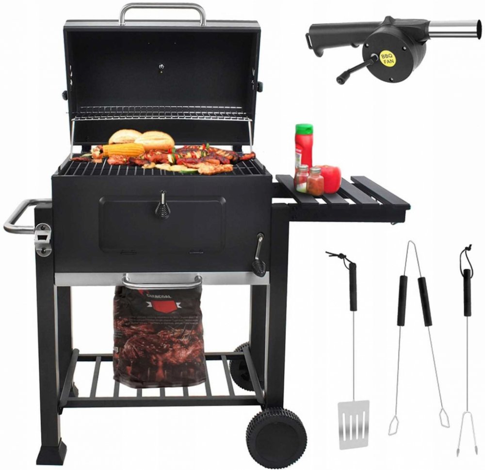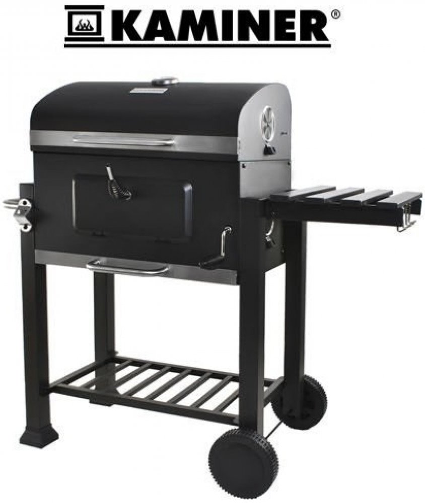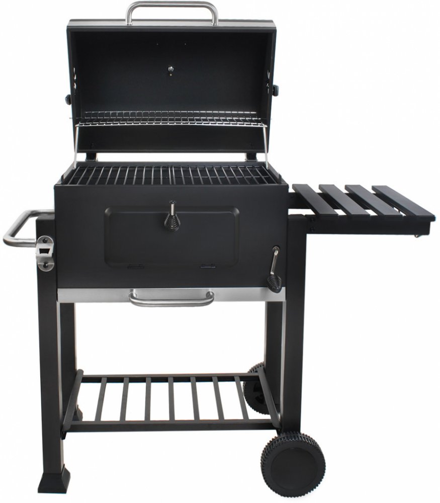 Tento venkovní gril má konstrukci z práškové oceli. Teploměr a ovládací knoflíky pro nastavení přívodu vzduchu dávají možnost teplotní manipulace v uzavřeném grilu. Popelník se samostatnou rukojetí umožňuje odstranit nepotřebný popel při grilování.