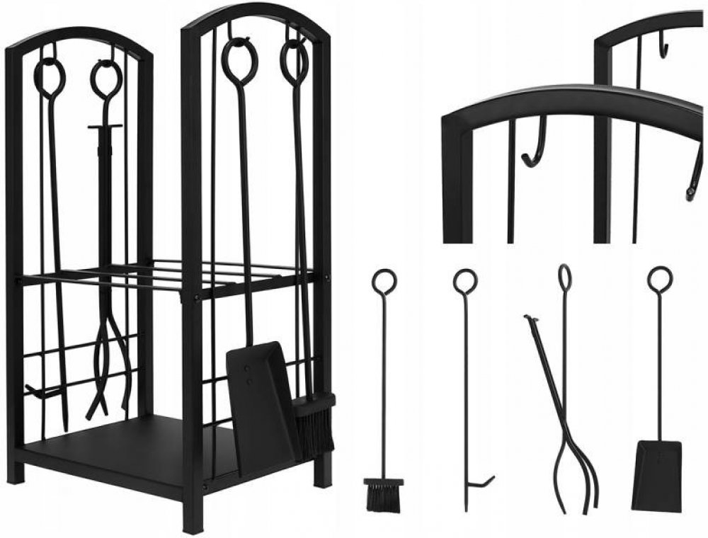 Sada obsahuje všechny potřebné položky pro obsluhu krbů a jiných typů ohnišť: kleště, lopatu, koště a pohrabáč, díky čemuž je všestranná a vhodná pro potřeby každého. Pohrabáč se používá k rovnoměrnému rozložení hořícího dřeva, uhlí nebo briket a také k čištění roštu pro lepší proudění vzduchu. Kleště mohou plnit stejnou funkci, ale používají se také k přesouvání hořících polen ze dřeva nebo uhlí. To je obzvláště důležité, pokud vypadnou z ohniště a je třeba je okamžitě odstranit. Lopata a koště jsou také nezbytné pro důkladné vyčištění ohniště. Pomáhají odstranit nejen popel, ale i veškeré nespálené nečistoty. Příslušenství má speciální rukojeti pro zavěšení na háčky umístěné na stojanu.