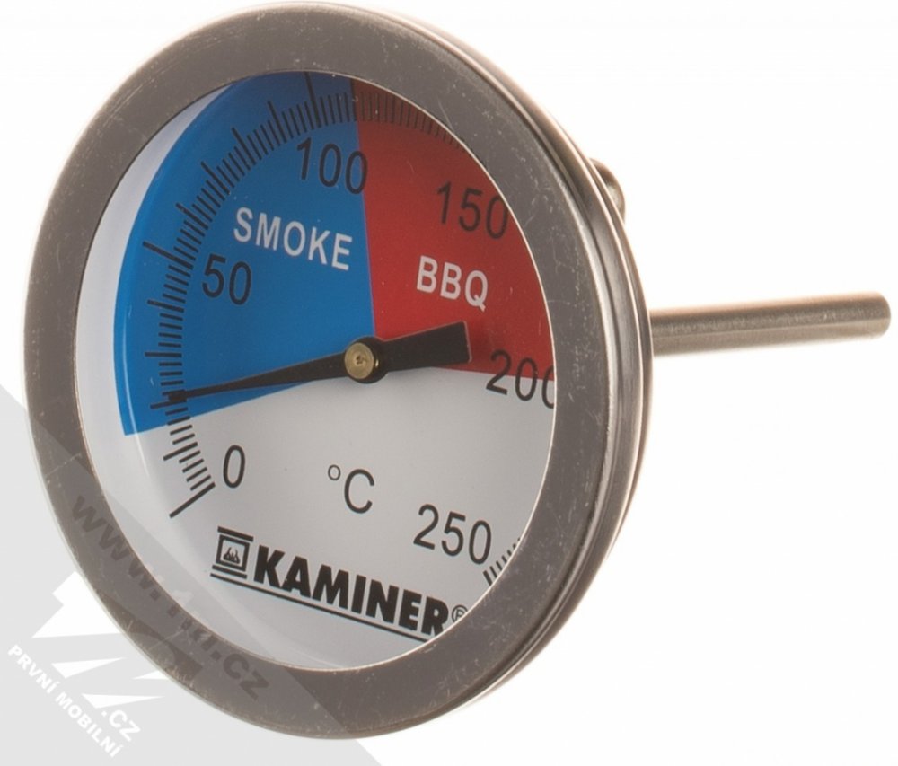 Robustní teploměr z nerezové oceli najde své užití v grilu, udírně nebo kuchyni.