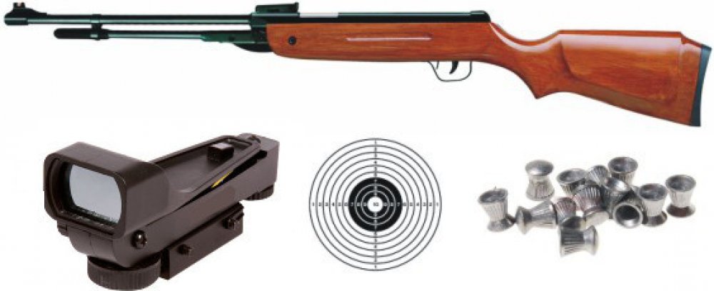 Vzduchovka B3 + puškohled + diabolky + terče, ráže: 4,5 mm. Spolehlivá pružinová vzduchová puška se spodním nátahem. Režim střelby přebíjení. Střelivo diabolky nebo broky, ráže 4,5 mm.